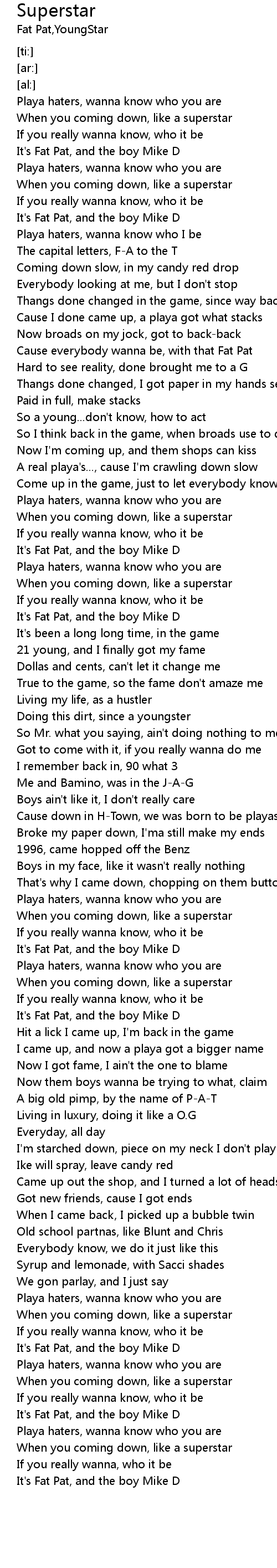 | [00:57.69] | Cause everybody wanna be, with that Fat Pat |