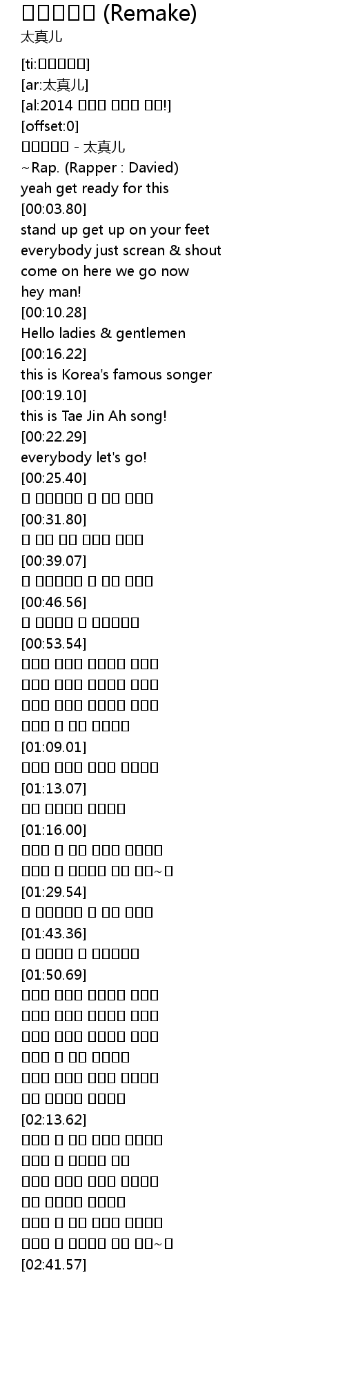 | [00:19.69] | this is Tae Jin Ah song! |