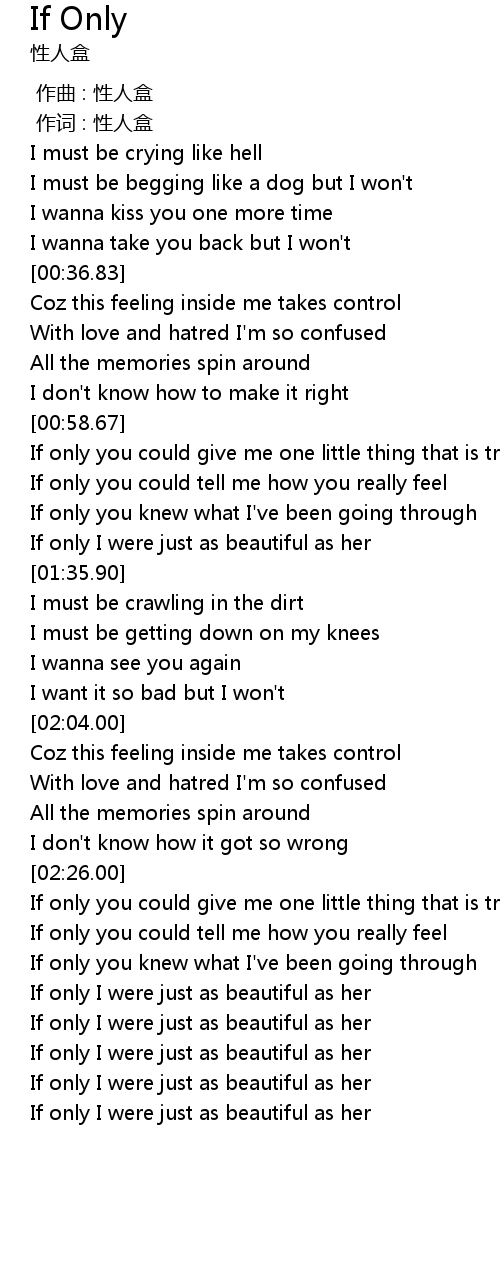 | [02:55.28] | If only I were just as beautiful as her |