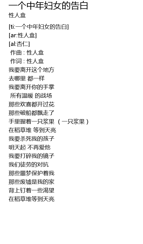 | [ti:一个中年妇女的告白] | |