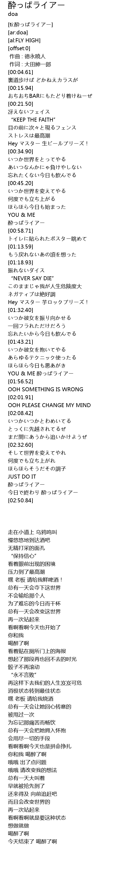 | [02:46.22] | 今日で終わり 酔っぱライアー |