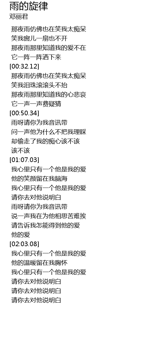 | [01:46.57] | 雨呀请你为我音讯带 |