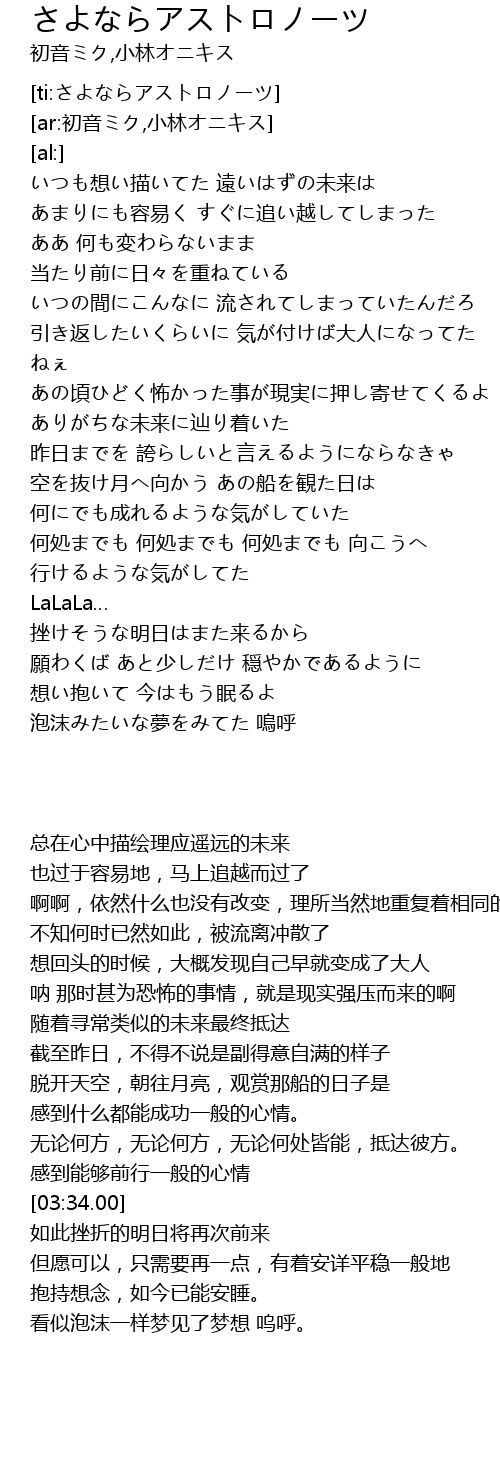 | [03:07.46] | 空を抜け月へ向かう あの船を観た日は |