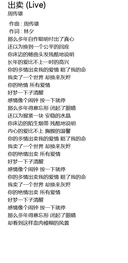 | [02:14.88] | 你的绝情出卖 所有爱情 |