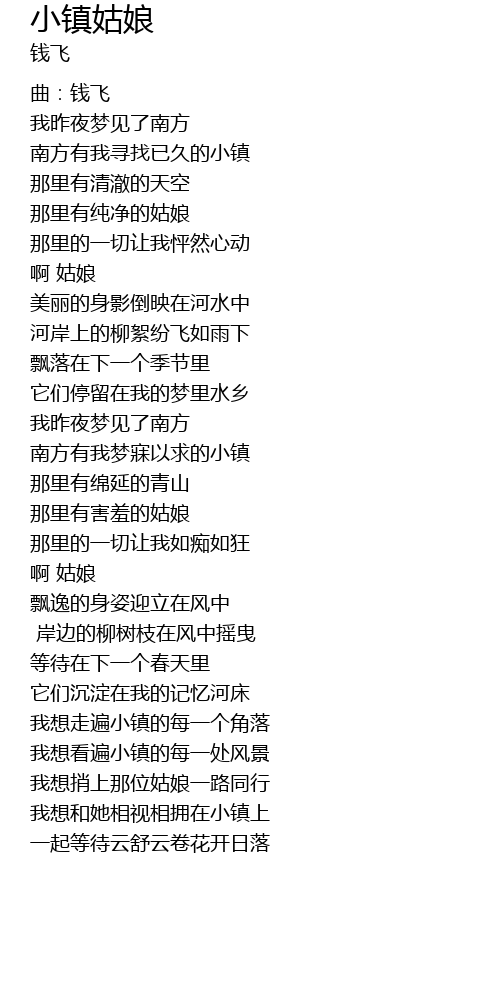 | [00:38.339] | 南方有我寻找已久的小镇 |