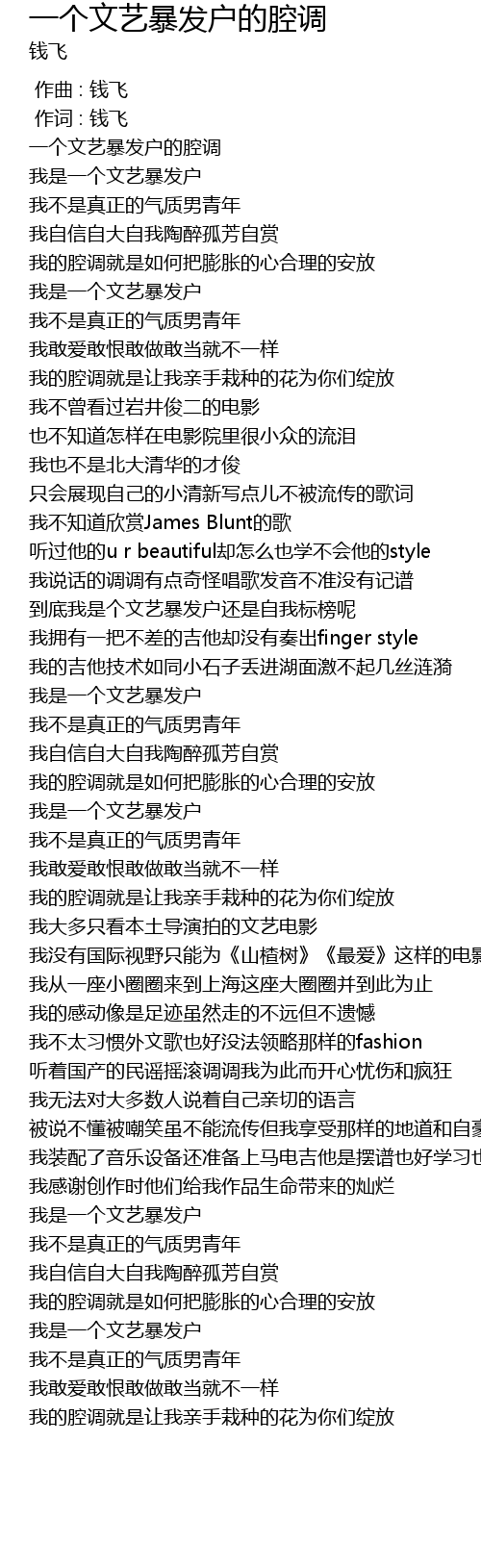| [00:00.01] | 一个文艺暴发户的腔调 |