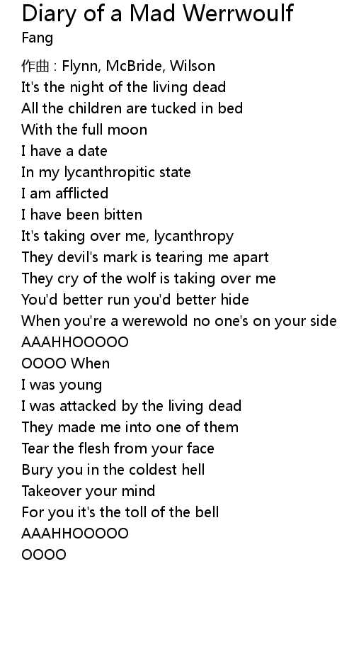 | Song | Diary of a Mad Werrwoulf |