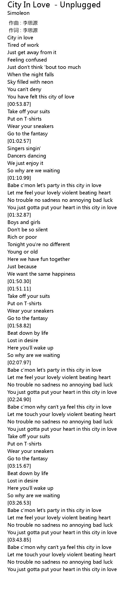 | [03:44.35] | Babe c'mon why can't ya feel this city in love |