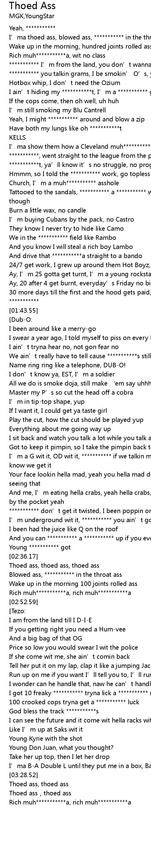 | [02:36.42] | Thoed ass, thoed ass, thoed ass |