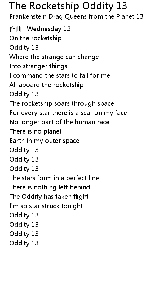 | Song | The Rocketship Oddity 13 |