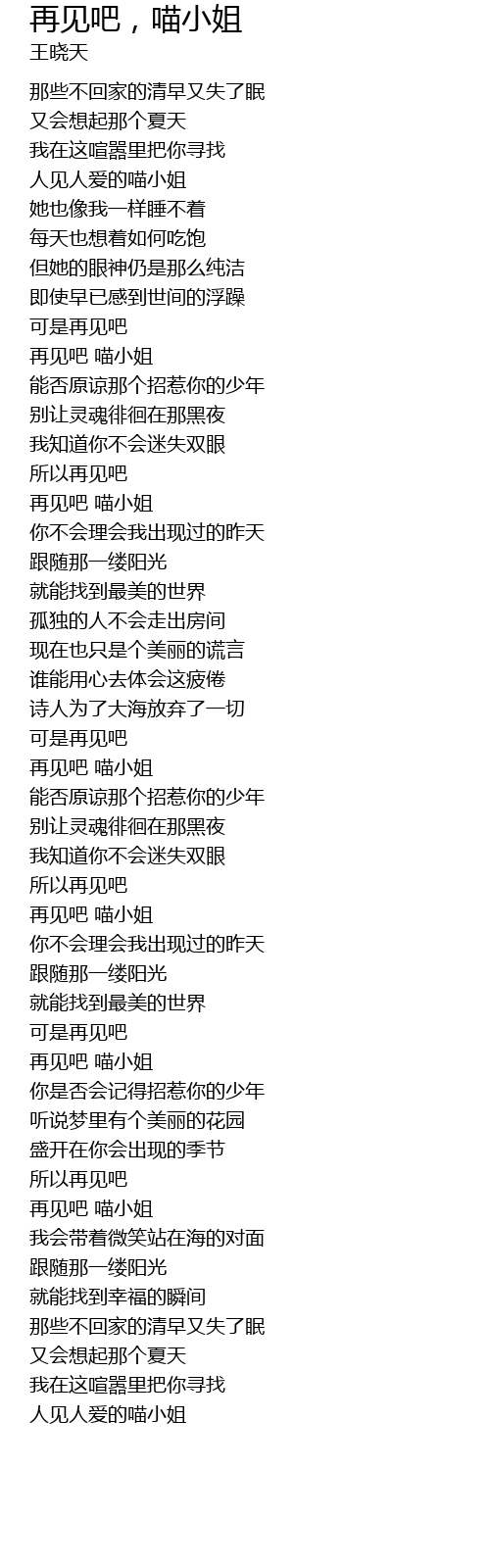 | [02:23.74] | zài jiàn ba miāo xiǎo jiě |