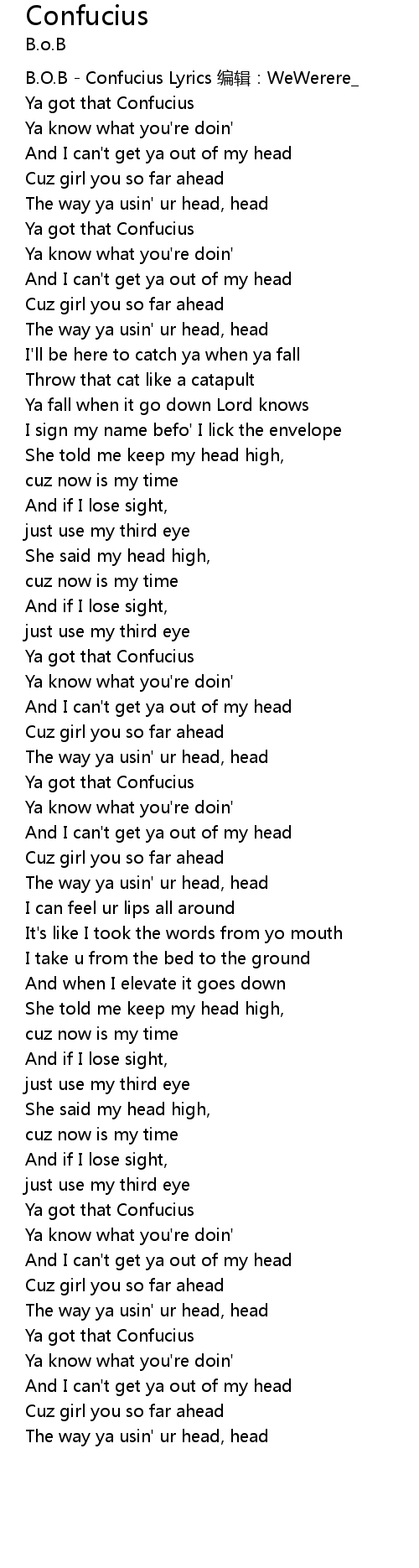 | B. O. B Confucius Lyrics biān jí: WeWerere_ | |