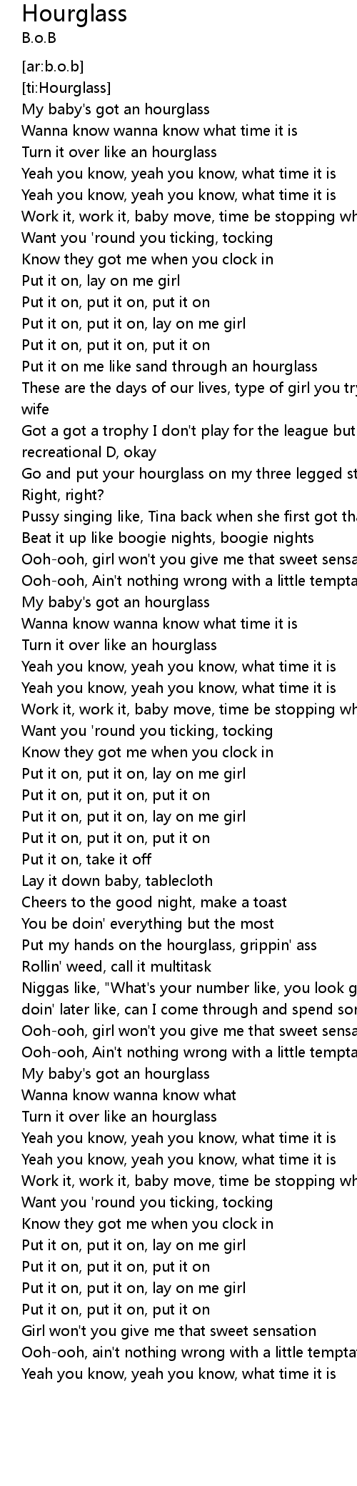 Put it on me like sand through an hourglass |