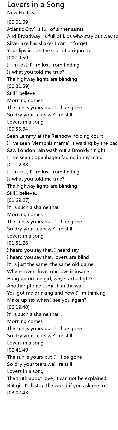 | [00:04.12] | Atlantic City’s full of sinner saints |