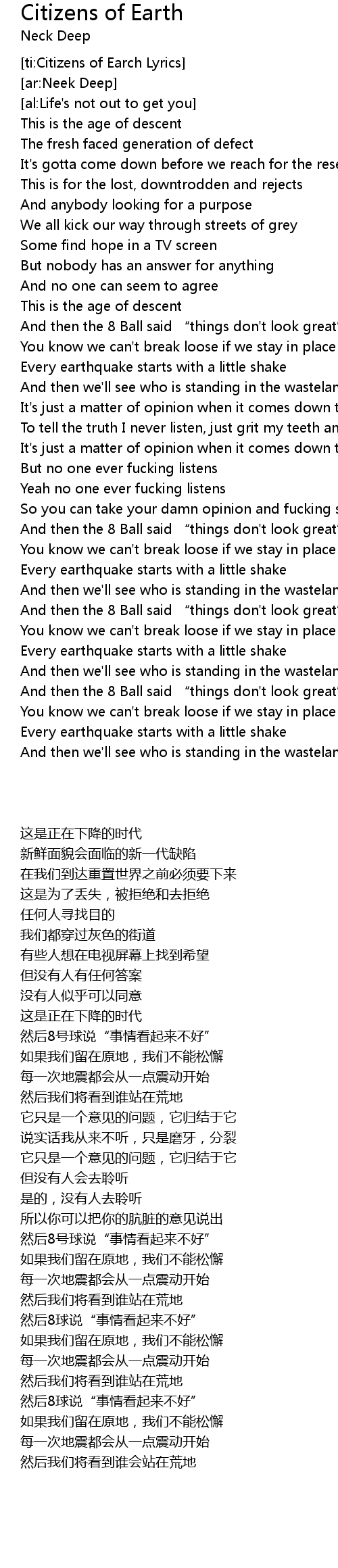| [01:38.02] | And then the 8 Ball said " things don' t look great" |
