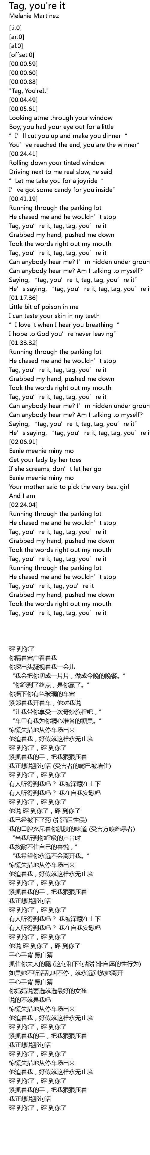 | [01:59.17] | Saying, " tag, you' re it, tag, tag, you' re it" |