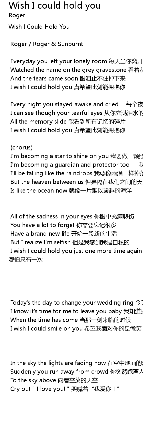 | I wish I could hold you 真希望此刻能拥抱你 | |