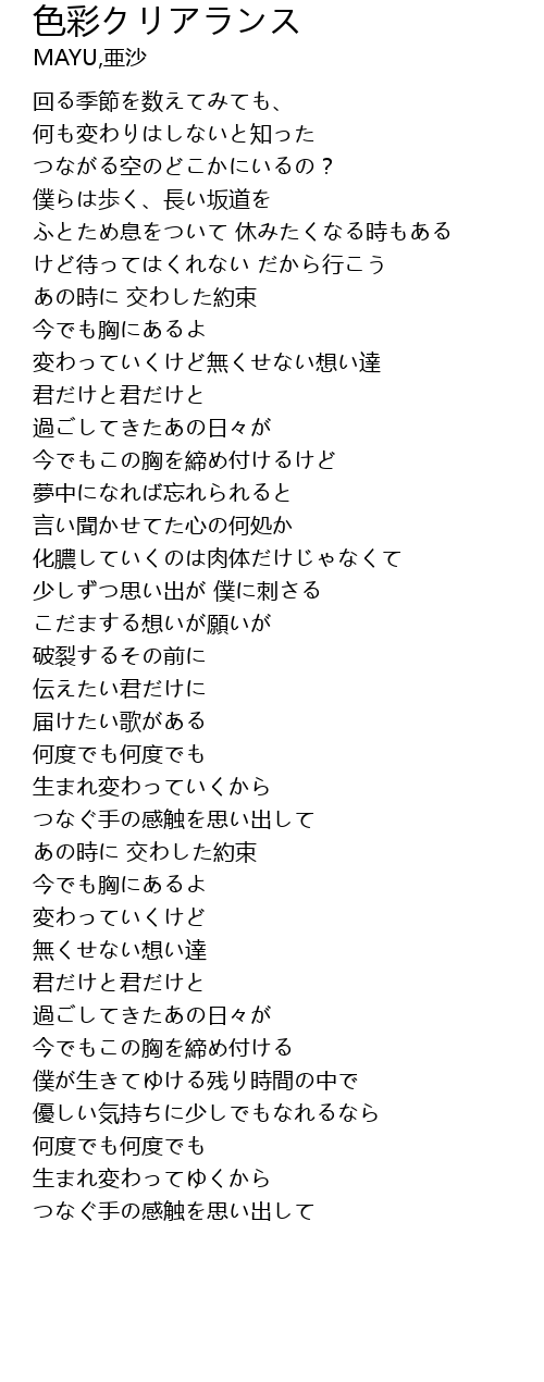 | [03:54.18] | つなぐ手の感触を思い出して |