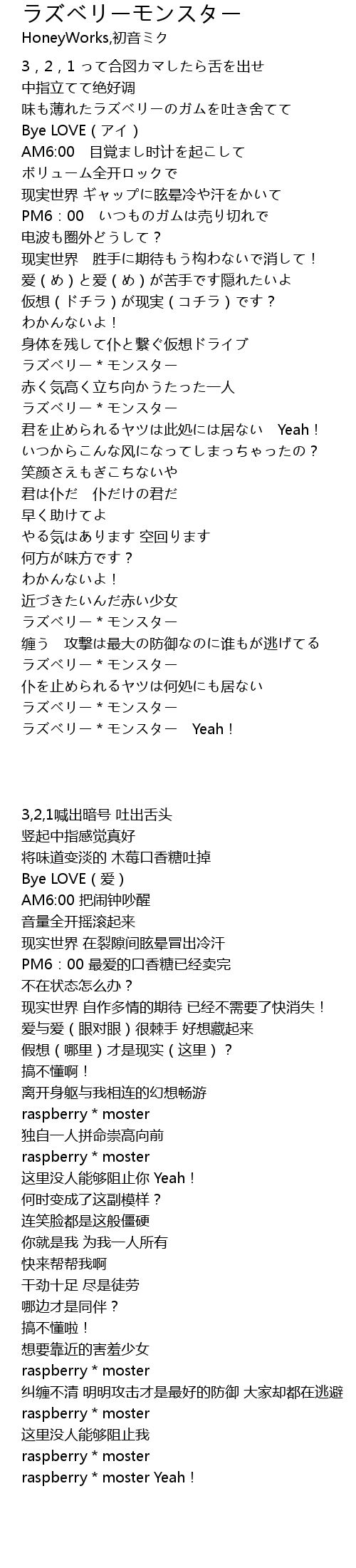| [02:17.19] | ラズベリー*モンスター |