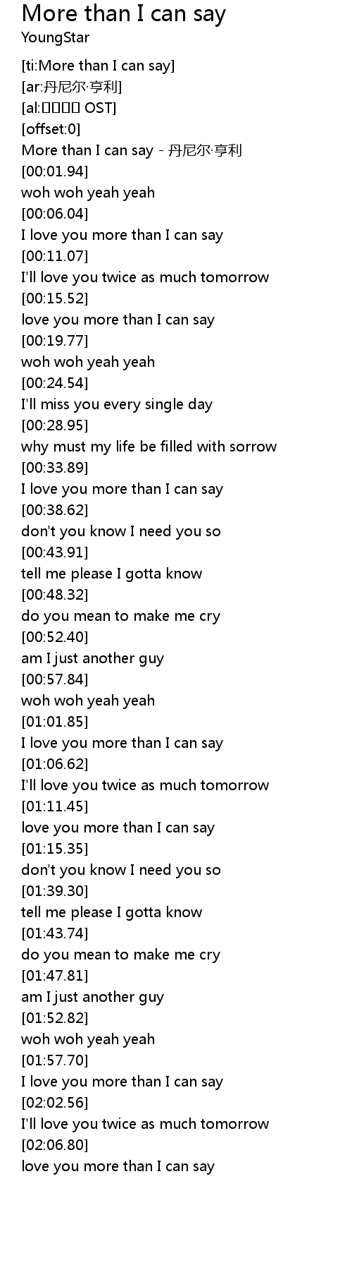 | [00:00.20] | More than I can say dān ní ěr hēng lì |
