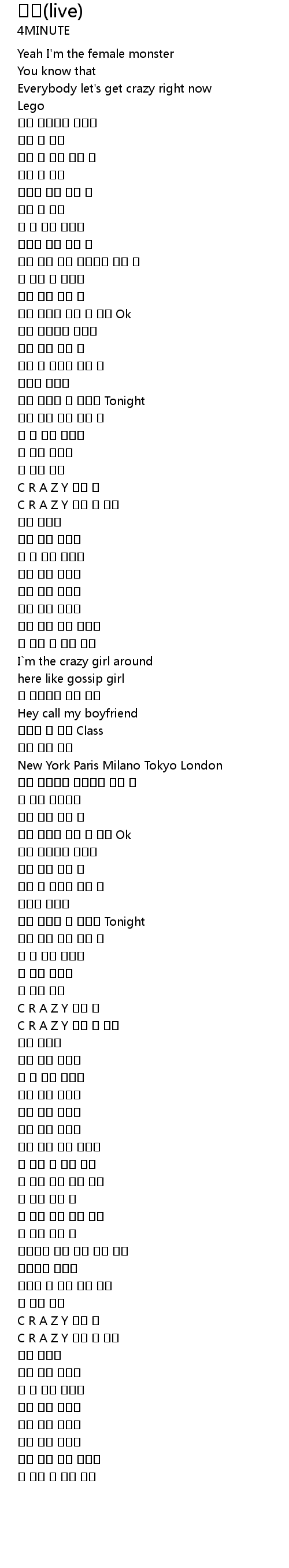 | [01:04.09] | C R A Z Y 모두 다 미쳐 |