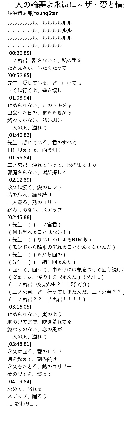 | [03:08.48] | (二ノ宮君、どこ行ってしまたんだ、二ノ宮君??) |