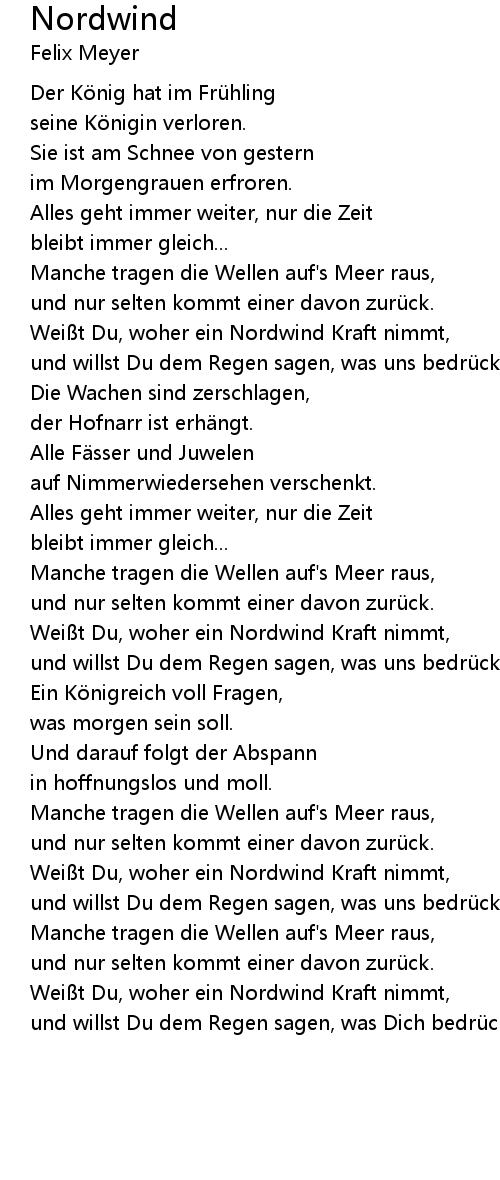 | Wei t Du, woher ein Nordwind Kraft nimmt, | |