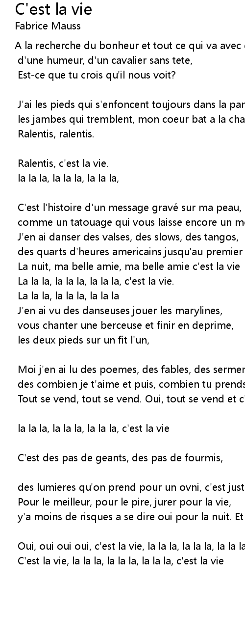 | La la la, la la la, la la la, c'est la vie. | |