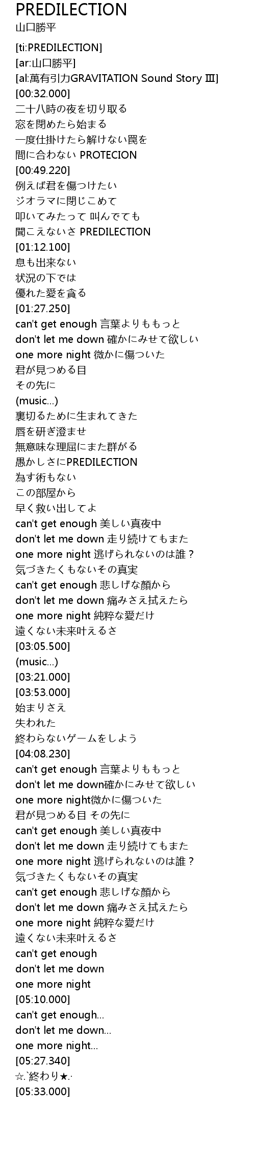 | [04:25.320] | can't get enough 美しい真夜中 |