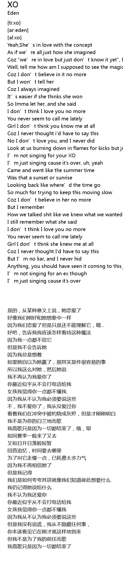 | [00:56.49] | I’m not singing for your XO |