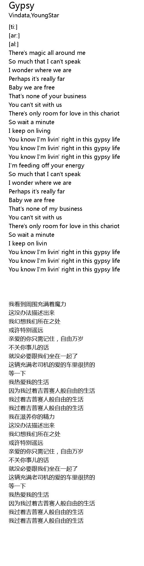 | [02:49.49] | You know I'm livin' right in this gypsy life |