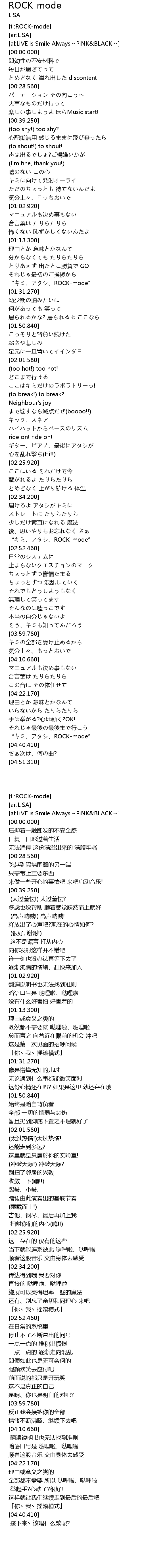 | [04:37.750] | “キミ、アタシ、ROCK-mode” |