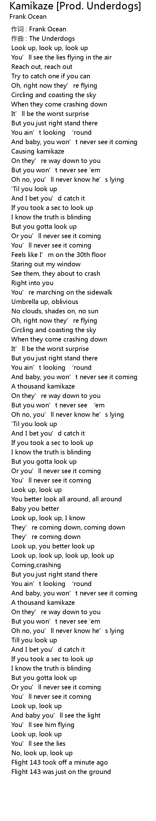 | [00:00.000] | 作词 : Frank Ocean |