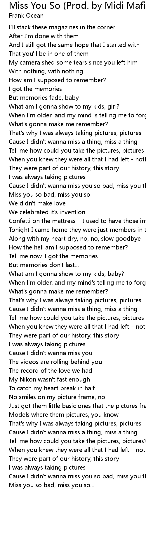 | Cause I didn't wanna miss you so bad, miss you this bad | |