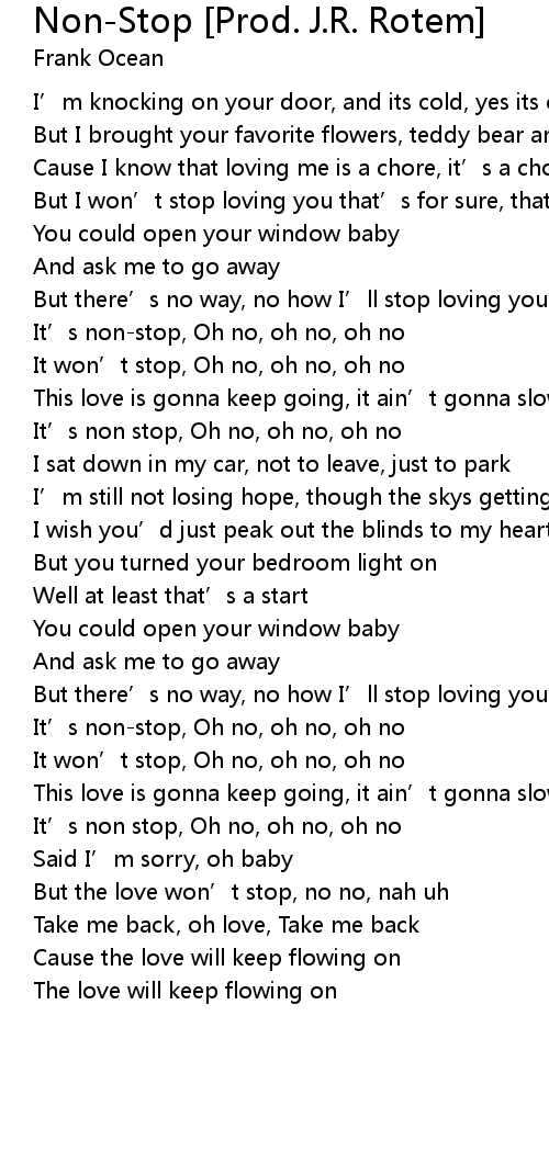 | [01:21.729] | It’s non stop, Oh no, oh no, oh no |