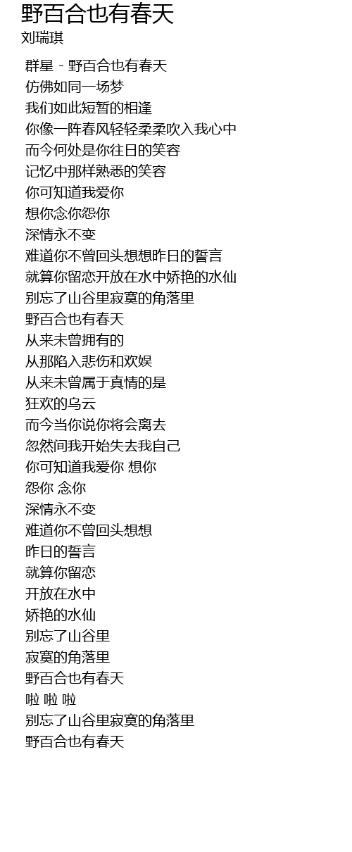 | [01:17.03] | 野百合也有春天 |