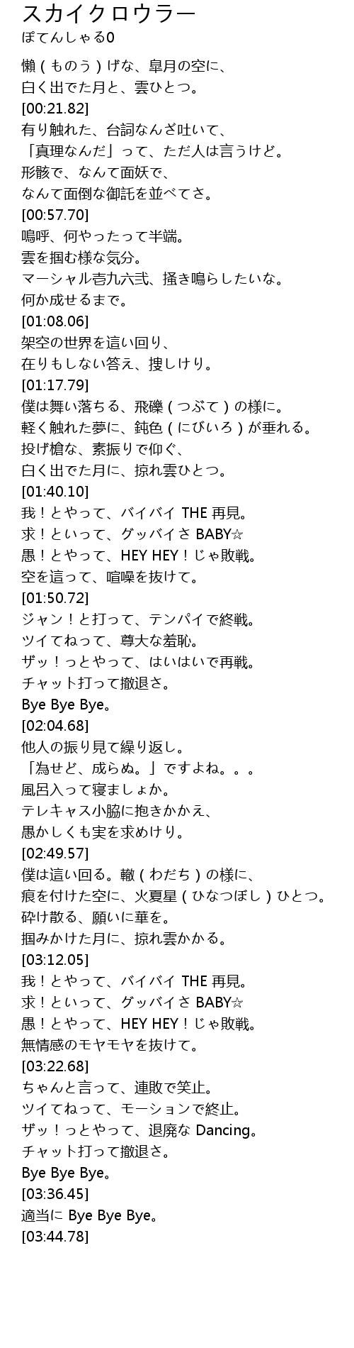 | [03:37.27] | 適当に Bye Bye Bye。 |