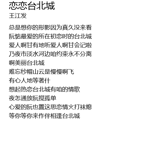 | xiǎng qǐ rè liàn tái běi chéng yǒu zán de qíng gē | |