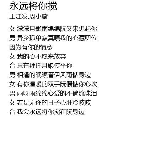 | 女:有你温暖的双手阮偎惦你心坎 | |