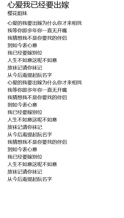 | 心爱的我要出嫁为什么你才来相找 | |