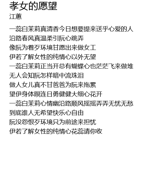 | yī ruǐ bái mò lì xīn qíng yōu yán lù shùn fēng yáo yáo nòng nòng wú yōu wú chóu | |