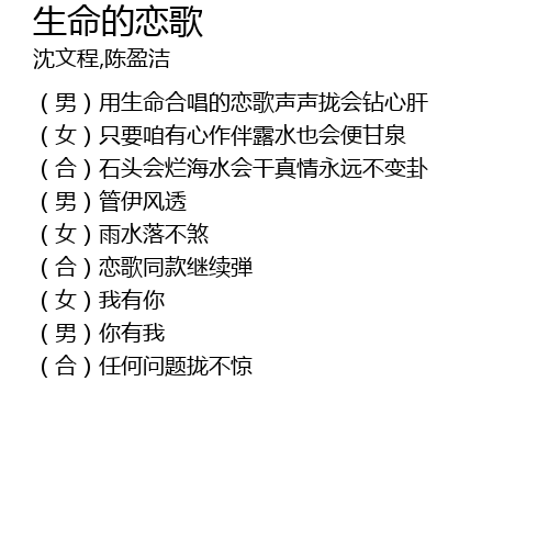 | (男)用生命合唱的恋歌声声拢会钻心肝 | |