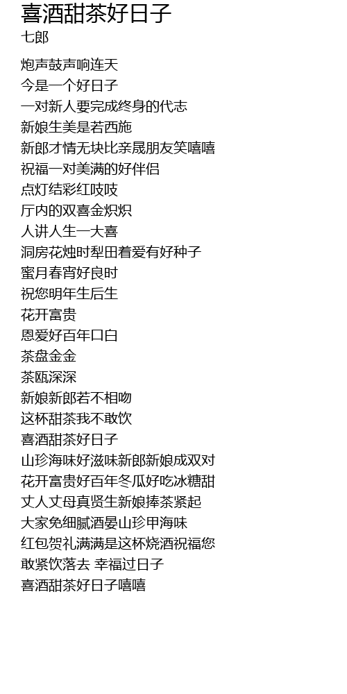 | xǐ jiǔ tián chá hǎo rì zi | |