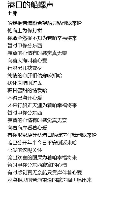 | yǒu nǐ xíng yǐng kuài děng dài gǎng kǒu chuán luó shēng bàn wǒ dào fǎn lái hā | |