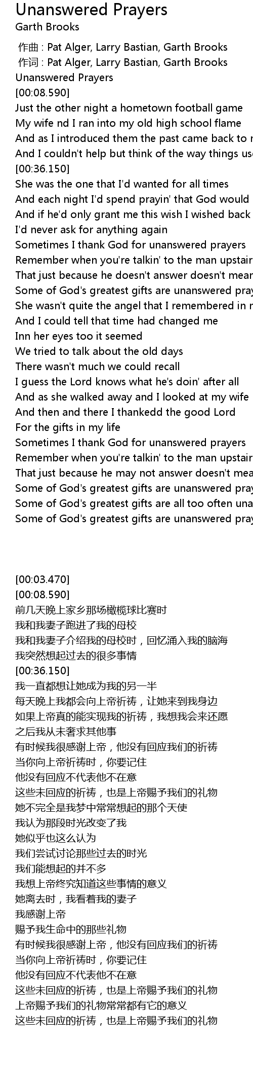 | [00:03.470] | Unanswered Prayers |