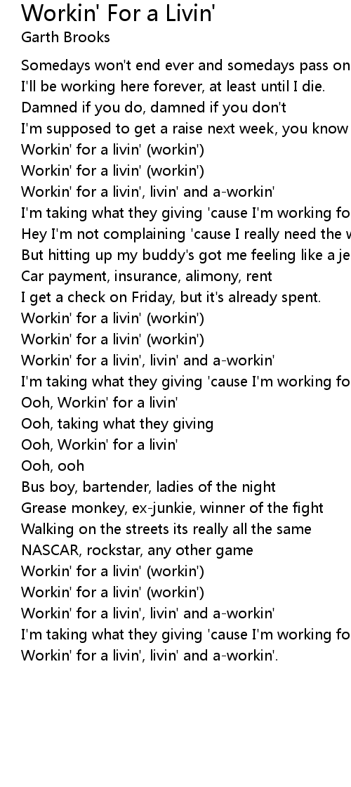 I'm taking what they giving 'cause I'm working for a livin'. |