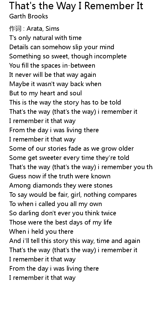 | That' s the way that' s the way i remember it | |