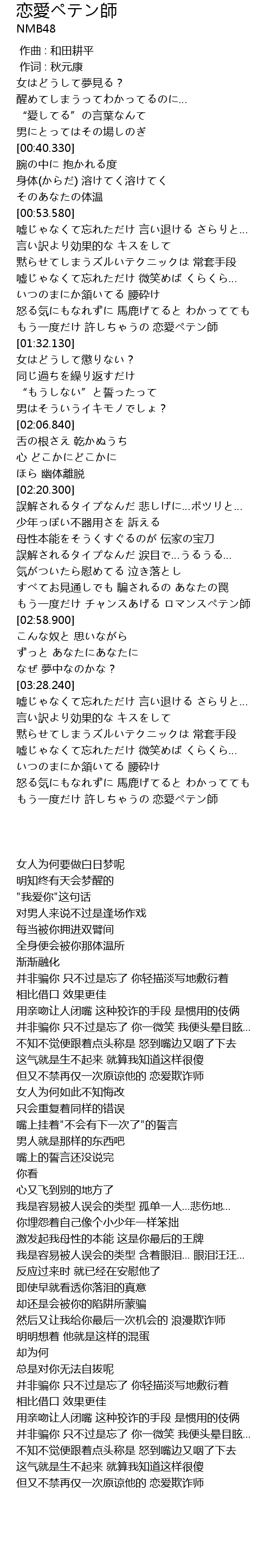 | [02:53.860] | もう一度だけ チャンスあげる ロマンスペテン師 |