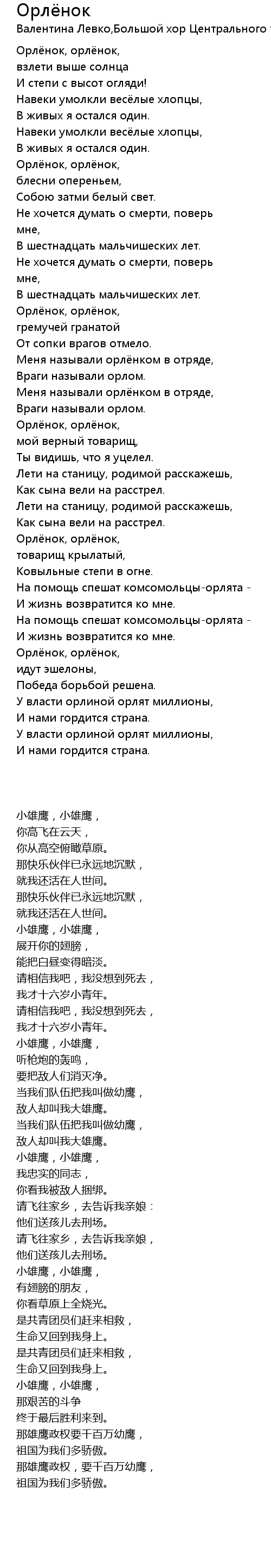Орлёнок  Lyrics