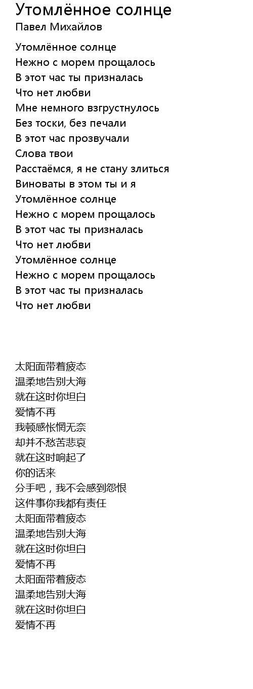 | Song | Утомлённое солнце |